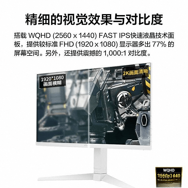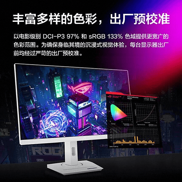 华硕这款XG27AQ-W电竞显示器,色彩表现力确实赞,DCI-P3 97% 和 sRGB 133% 色域覆盖,玩游戏或者看电影,色彩都非常鲜艳。2K分辨率画面细腻,用来看小姐姐,那叫一个清晰。