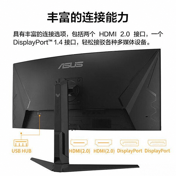 接口方面也很齐全,Type-C、DP、HDMI都有,连接各种设备都很方便。底座支持多向调节,长时间使用也不会觉得累。再加上华硕的品牌加持,质量和售后都有保障,可以放心购买!